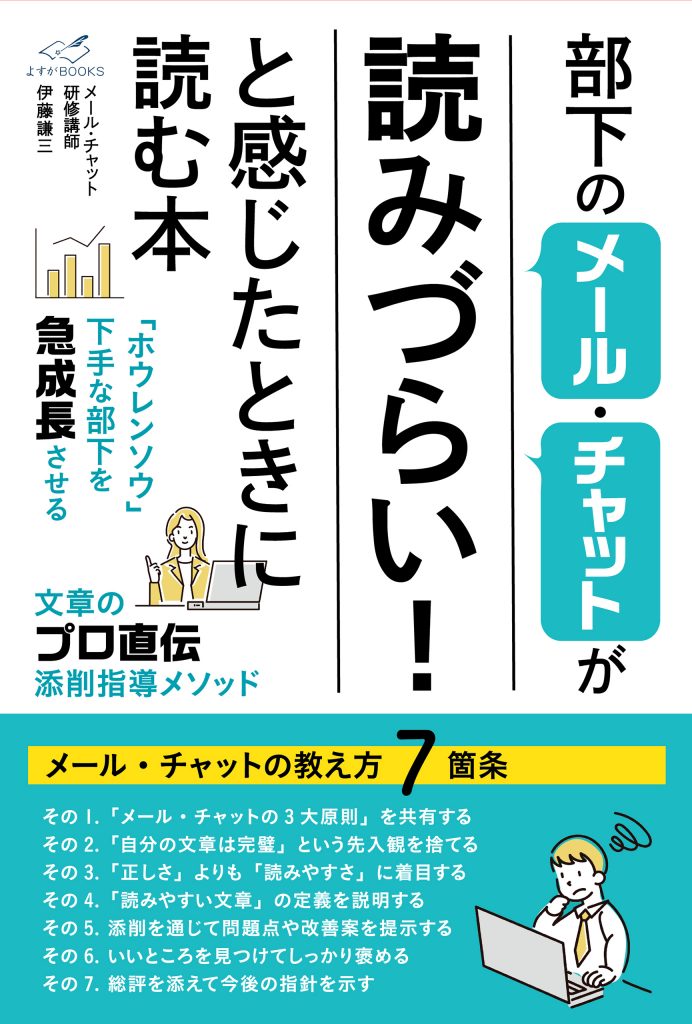 「メール・チャットの書き方」の教え方が学べる唯一の本! 部下のメール・チャットが「読みづらい!」と感じたときに読む本 報連相がうまくない部下を指導するためのノウハウを集約したこの一冊(定価1,210円)を無料プレゼント(※企業担当様のみお申し込み下さい) テキストコミュニケーションロスを削減して組織の業務効率をアップ! 発売日:2024年12月19日 定価:1,210円(本体1,100円+税) 出版社:星天出版 単行本(ソフトカバー):160ページ 全国書店・ネットで取扱中 \書籍のPDFデータもメールですぐに届く/無料で書籍を受け取る お名前(必須) メールアドレス(必須) 郵便番号(必須) 住所(必須) 電話番号(必須) 会社名(必須) 部署名(任意) 送信する ※お一人様1冊限り、先着順とさせていただいております。会社名は必ずご記入くださいませ。※お送りする書籍は数に限りがございます。ご希望の方はお早めにお申し込みください。※国内のみのお届けとなります。※応募内容に記載不備がある場合は無効となりますのでご注意ください。 書籍の内容 第一章 テキストコミュニケーションの特性を理解しよう同期コミュニケーションと非同期コミュニケーションの違い非同期コミュニケーションのメリット・デメリット同期コミュニケーションと非同期コミュニケーションの使い分けテキスト上のコミュニケーションロスによる弊害 第二章 メール・チャットによる報連相の3大原則原則 1. メール・チャットは読むのが面倒なものである原則 2. テキストによる情報伝達は想像以上に伝わりづらい原則 3. ビジネスコミュニケーションには必ず目的がある 第三章 【部下に指導する前のおさらい】ビジネスメール・チャットの基礎知識ビジネスメールの基礎知識ビジネスチャットの基礎知識メール・チャットの使い分け 第四章 メール・チャットの書き方 15箇条その 1. 書く前に用件を整理するその 2. 用件がひと目で分かる件名にするその 3.「目的→結論→補足情報」の順で書くその 4. 一文の長さは 60 文字以内におさめるその 5. 箇条書きで見た目を整えるその 6. 見出しを使って内容を区切るその 7. 改行や空白行で適度な余白を作るその 8.「相手にしてほしいこと」を明記するその 9. 事実と解釈をはっきりと分けるその 10. 可能な限り具体的に書く第五章 メール・チャットの教え方 7箇条その 11. 相手のメッセージを引用しながら返信するその 12. メッセージの往復を減らす工夫をするその 13. できる限り素早く返信するその 14. 気持ちや感情をテキストで表現するその 15. 送信前に必ず見直しをする 第五章 メール・チャットの教え方7箇条 その 1.「メール・チャットによる報連相の 3 大原則」を共有する その 2.「自分の文章は完璧」という先入観を捨てる その 3.「正しさ」よりも「読みやすさ」に着目する その 4.「読みやすい文章」の定義を説明する その 5. 添削を通じて問題点や改善案を提示する その 6. いいところを見つけてしっかり褒める その 7. 総評を添えて今後の指針を示す 第六章 実践問題〜部下のメール・チャットを添削してみよう〜 【例題 1】お取引先への質問メール 【例題 2】上司との日程調整(チャット) 【例題 3】上司への報告(メール) 第七章 メール・チャットの指導に潜む構造的な問題点 理由 1:書く技術に精通している人が少ない 理由 2:世代によってコミュニケーションのセオリーが異なる 理由 3:部下へのダメ出しには中毒性がある 書籍を無料プレゼントする理由 本書の著者は、ビジネスメール・チャットの研修講師として、これまで複数の企業から、メール・チャットによるテキストコミュニケーションの課題について相談を受けてきました。 具体的には、 部下からの報連相が一回では理解できず、無駄なやり取りが発生している。テキストコミュニケーションが上手な社員と下手な社員で情報格差が生まれ、結果として、組織の生産効率が下がってしまう。お取引先にテキストで誤解を与えてしまった結果、取引停止となってしまった。といった内容です。 社内研修を積極的に取り入れている企業様には、これらの課題を解決できるよう直接サポートできますが、そういった企業様ばかりではありません。また、部署レベルではテキストコミュニケーション大きな課題感を持っていて、研修を導入したいと思っていても、経営者が同様に課題と感じなければ、なかなか研修実施には至らないのが現状です。 そういった、テキストコミュニケーションを改善したいものの、研修を実施することが現状では難しい方々に向けて用意したのが本書となります。本書の内容ができる限り広く伝わってほしい想いから、冊数限定ではございますが、無料で配布する企画を実施する運びとなりました。全国の書店で販売している有料の書籍を無料でプレゼントする企画のため、予告なく終了することがあることをご了承くださいませ。 書籍の受け取り方法 STEP1 本ページのフォームから申し込む。 STEP2 書籍のPDFデータがメールで届く。 STEP3 2〜3